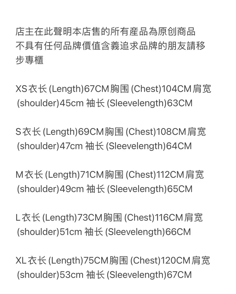 | Size | S, M, L, XL |