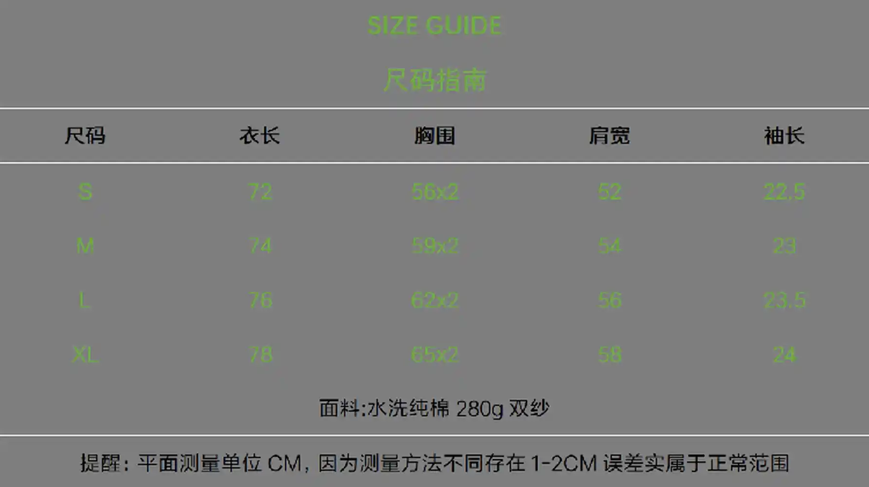 | Size | S, M, L, XL |