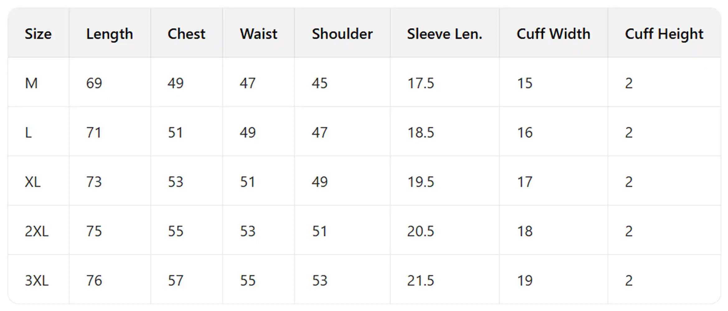 | Size | S, M, L, XL |